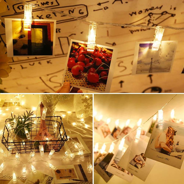 • LED lighted Clips: Each Photo Clip comes with one LED light for displaying holiday cards, photos and artworks. Creating an excellent illumination and a warm atmosphere.