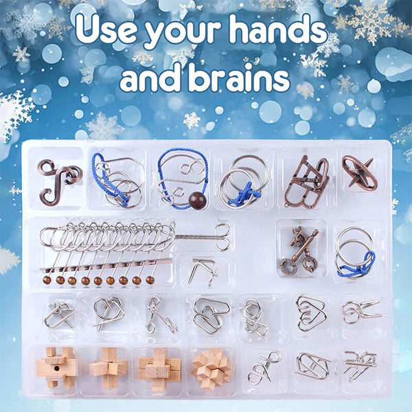 Unwrap the magic of the season with this enchanting advent calendar puzzle set! Each day brings a new surprise—featuring a delightful mix of 3D metal and wooden puzzles that spark creativity and wonder.