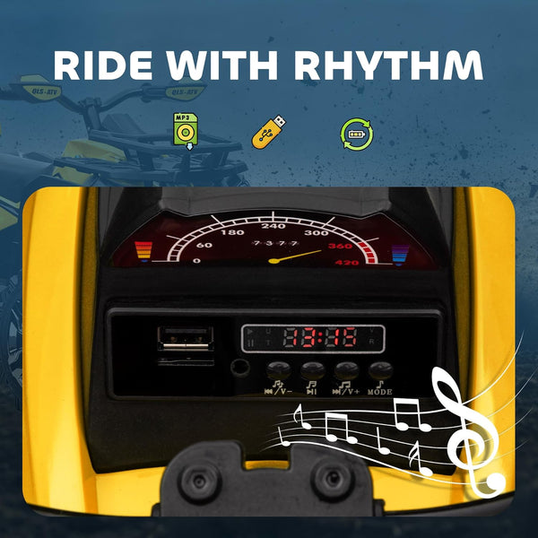 - Powered by a 12V/10Ah battery, the quad bike offers an extended riding time of up to 45 minutes on a single charge.