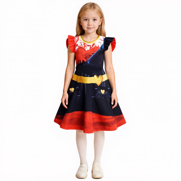 Girls Red Cosplay Dress Princess Red Fly Sleeve Dress Tutu Dress Halloween Costume.