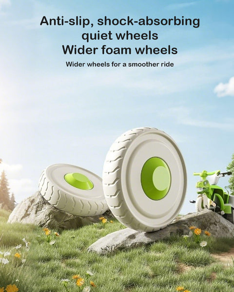 Our wider foam wheels deliver an ultra-smooth, whisper-quiet ride, featuring top-tier anti-slip grip and shock absorption to keep little explorers safe, comfy, and ready for outdoor adventures!