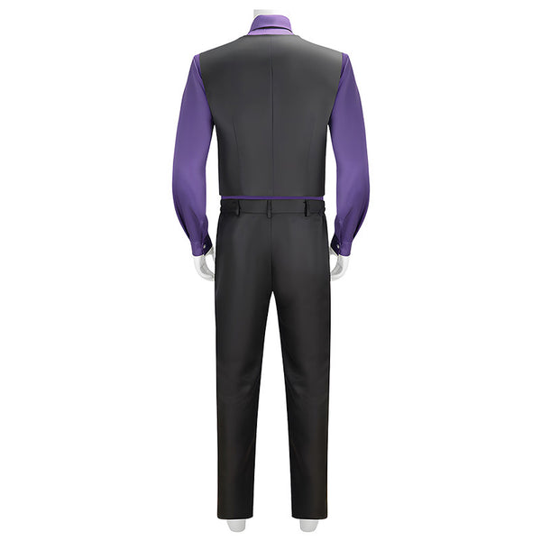Mens FNAF Costume William Purple Uniform Set with Vest and Hat for Roleplay Events.