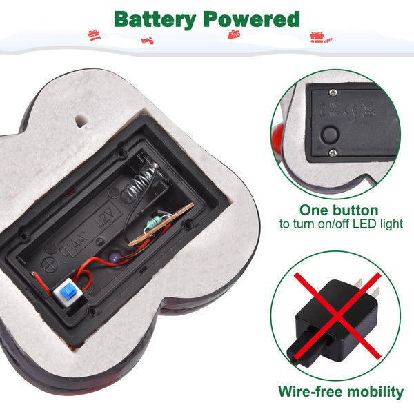 • Designed for ultimate convenience, it includes a simple bottom switch to turn the LED lights on and off, operates without a power cord for easy mobility, and can be freely placed anywhere you wish to add festive cheer.