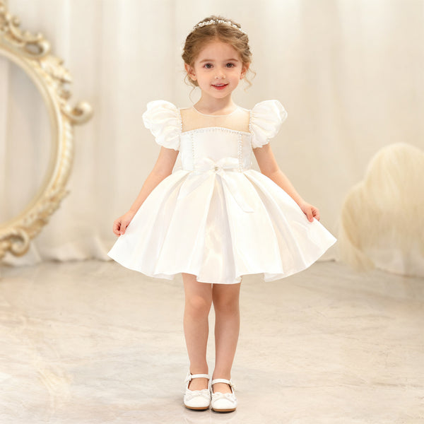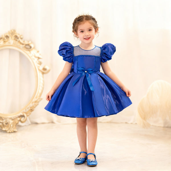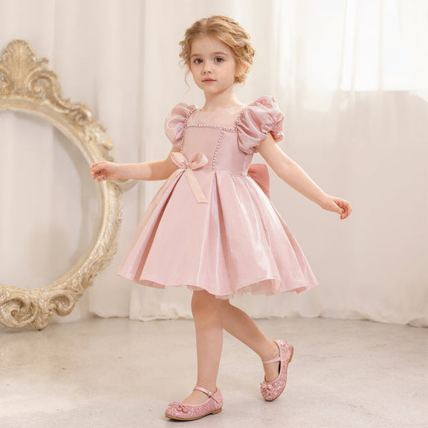 Toddler Christmas Party Dress Formal Puff Sleeve Xmas Smocked Green Costume for Girls.