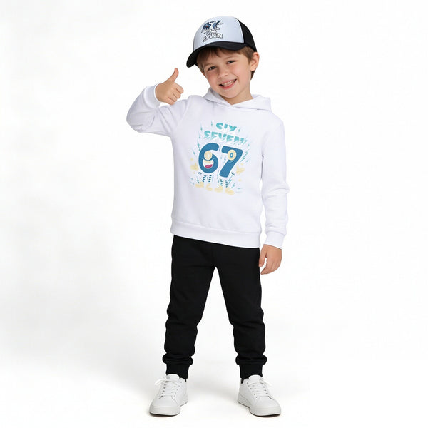 Six-Seven in Steal A Brainrot Costume Hooded Sweatshirt and Cap Trendy Outfit 67 Meme Hoodie for Boys Girls.