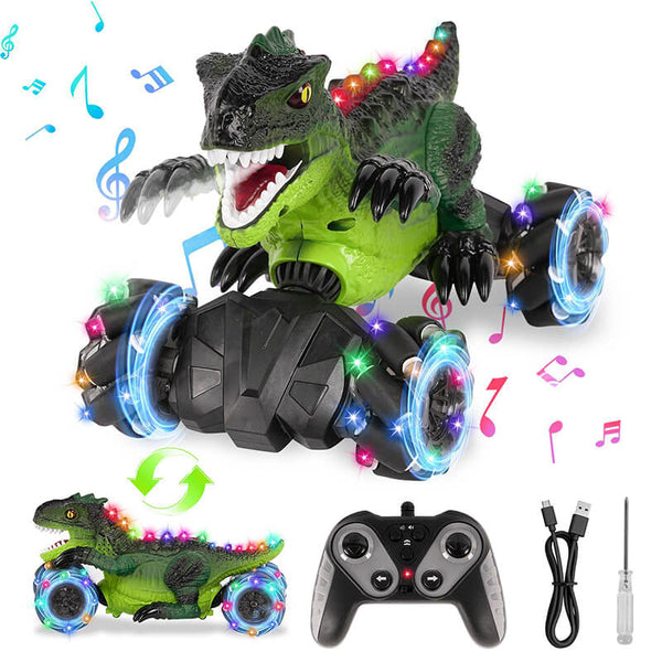 - Features a highly realistic design with detailed textures, enhanced by vibrant multicolor lights on both the dinosaur body and wheels, accompanied by authentic sound effects that vividly capture the charm of prehistoric dinosaurs.