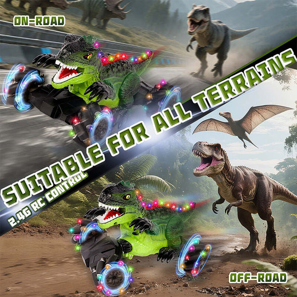 - Equipped with 2.4GHz anti-interference remote control, the toy supports multiple dinosaur vehicles racing simultaneously within a range of up to 164ft.