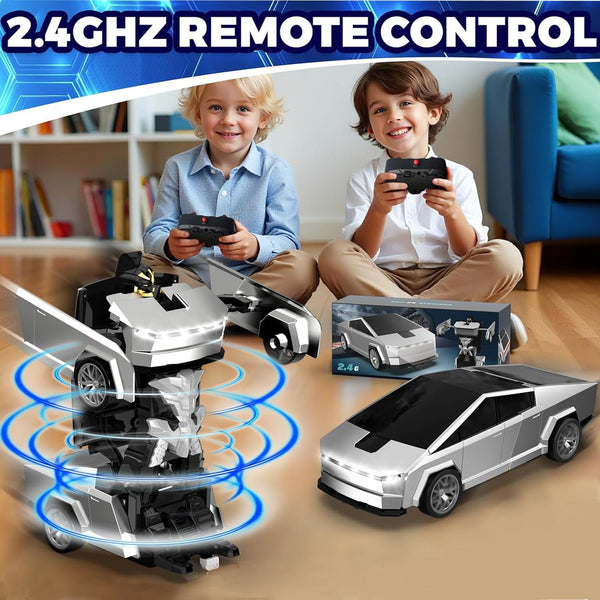 Get ready for double the fun! This awesome remote control toy switches between a sleek Cyber Truck and a powerful robot, giving kids two toys in one.