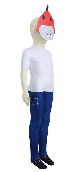 Missing Kid Costume White Jumpsuit and Helmet The Forest Survival Outfit for Game Player.
