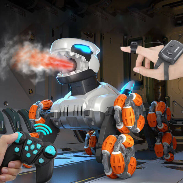 Multi-functional RC Dinosaur: 8 wheels have dynamic shape-shifting capabilities and performs various stunts, offering an immersive play experience with realistic movements and agility.