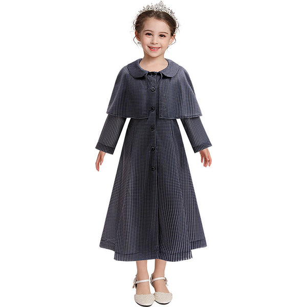 Girls Wednesday Dress Black Houndstooth Cape Coat for Halloween Cosplay Party.