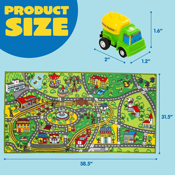 Kids City Map with 12 Cars Pull-Back Vehicle Set Play Track Rugs Holiday Gift