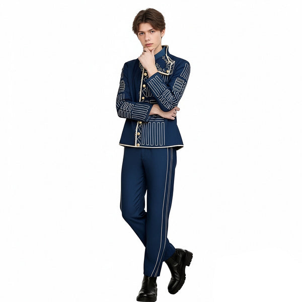 Mens Prince Costume Navy Tops Pants and Shirt Suit Cosplay Outfit