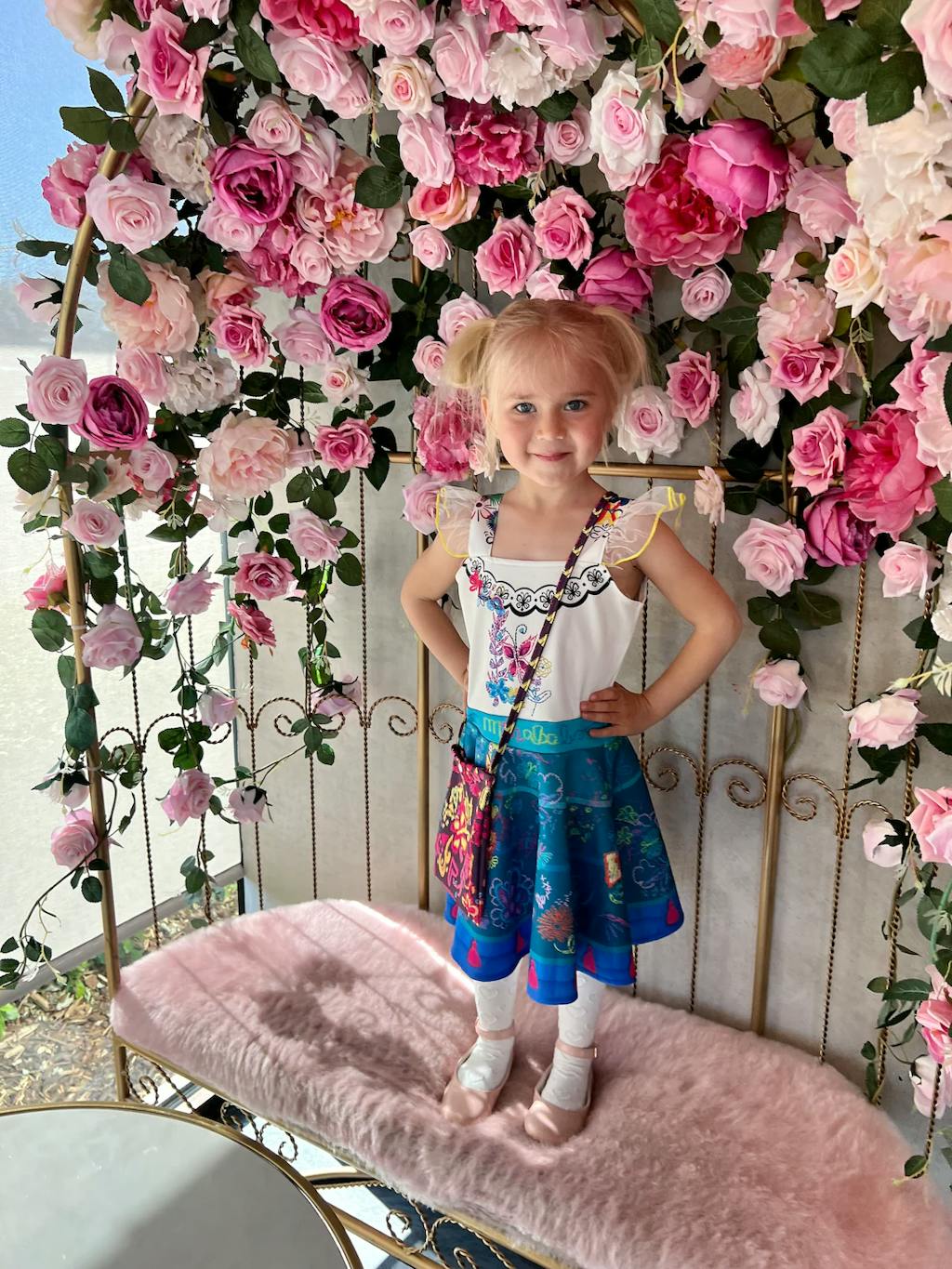 - Look just like Madrigal in this beautifully vibrant dress with details.