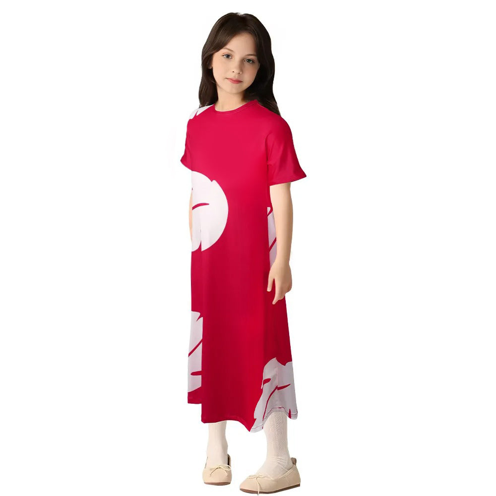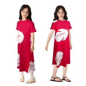 Girl Hawaiian Dress Red Pelekai Cosplay Costume Kids Party Dress-Up Outfit.